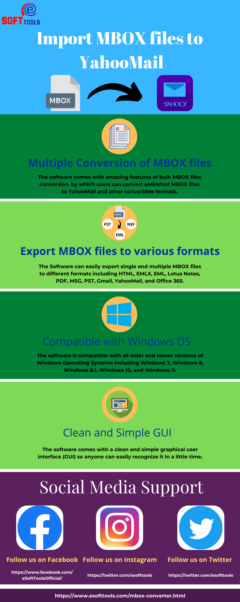 eSoftTools MBOX Converter software. I didn't encounter any errors using this software. Using this software, I converted the MBOX file to Yahoo Mail in just a few steps without any data loss. Furthermore, this software also offers the option to convert the MBOX file to email cloud platforms other than Yahoo Mail, such as the MBOX file to Gmail and the MBOX file to Office 365, all of which are 100% secure.