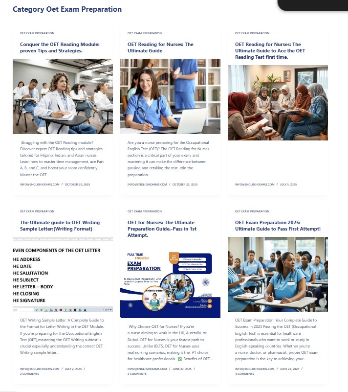 https://engliishexams.com/conquer-the-oet-reading-module-proven-tips-and-strategies/OET Exam Preparation 2025: Ultimate Guide to Pass First Attempt! - englishexams.com
